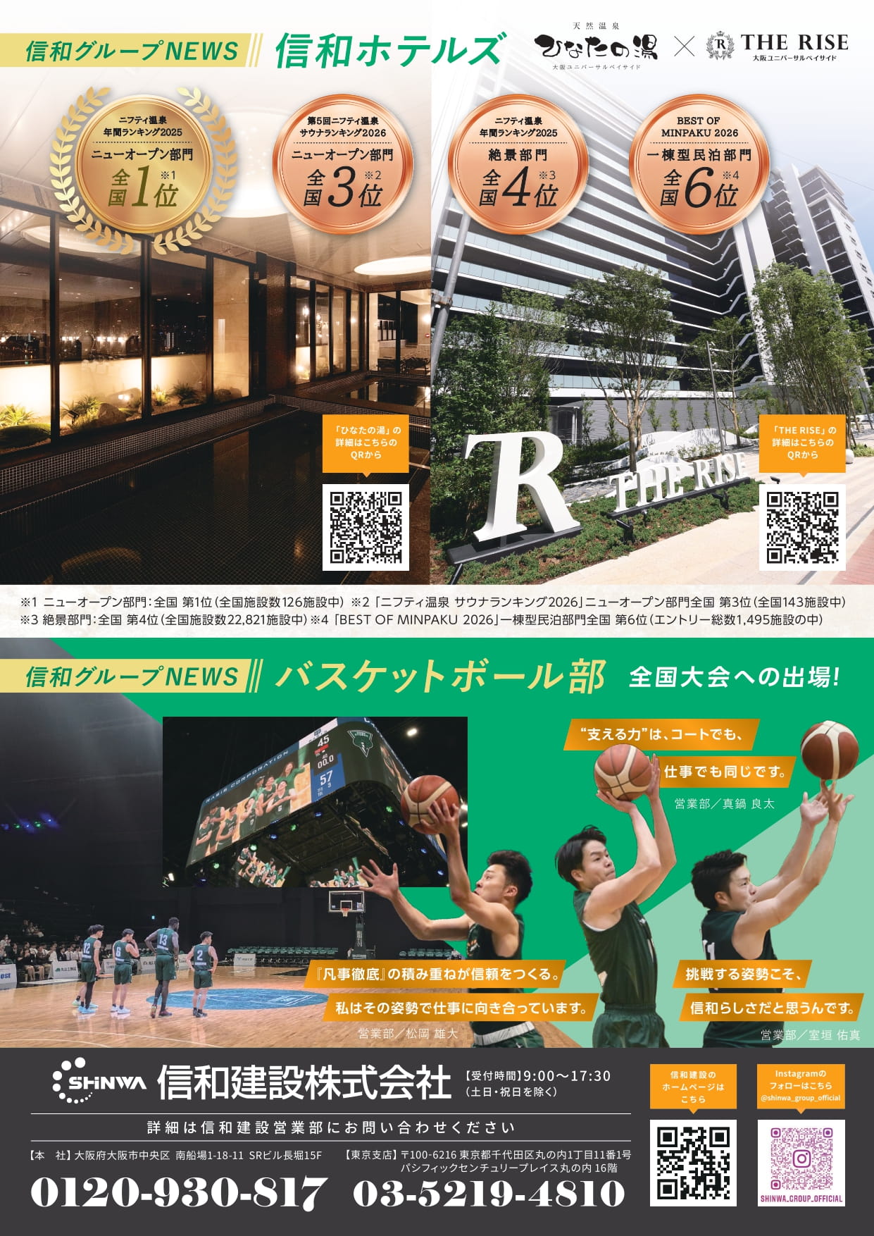 さらに民泊分野においては、「BEST OF MINPAKU 2026」にて、一棟型民泊部門にて全国第6位(THE RISE 大阪ユニバーサルベイサイド)を獲得するなど、宿泊施設としても高い評価をいただいております。これらの実績は、施設の企画・開発から運営まで一貫して手がける信和グループならではの強みであり、温浴施設と宿泊機能を組み合わせた複合的な価値創出にもつながっています。