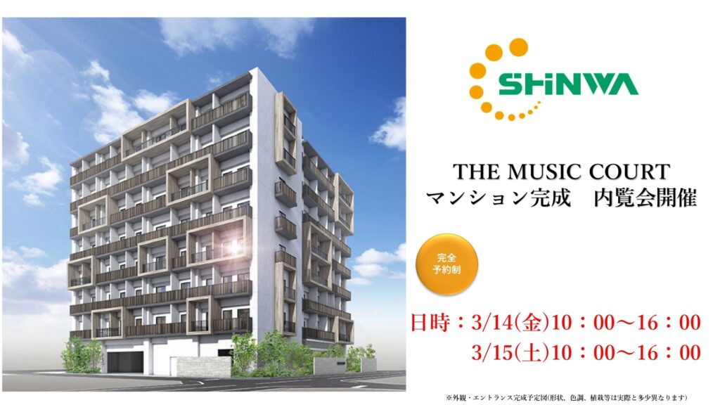 信和の最新マンション「THE MUSIC COURT」が3月17日に竣工予定です!